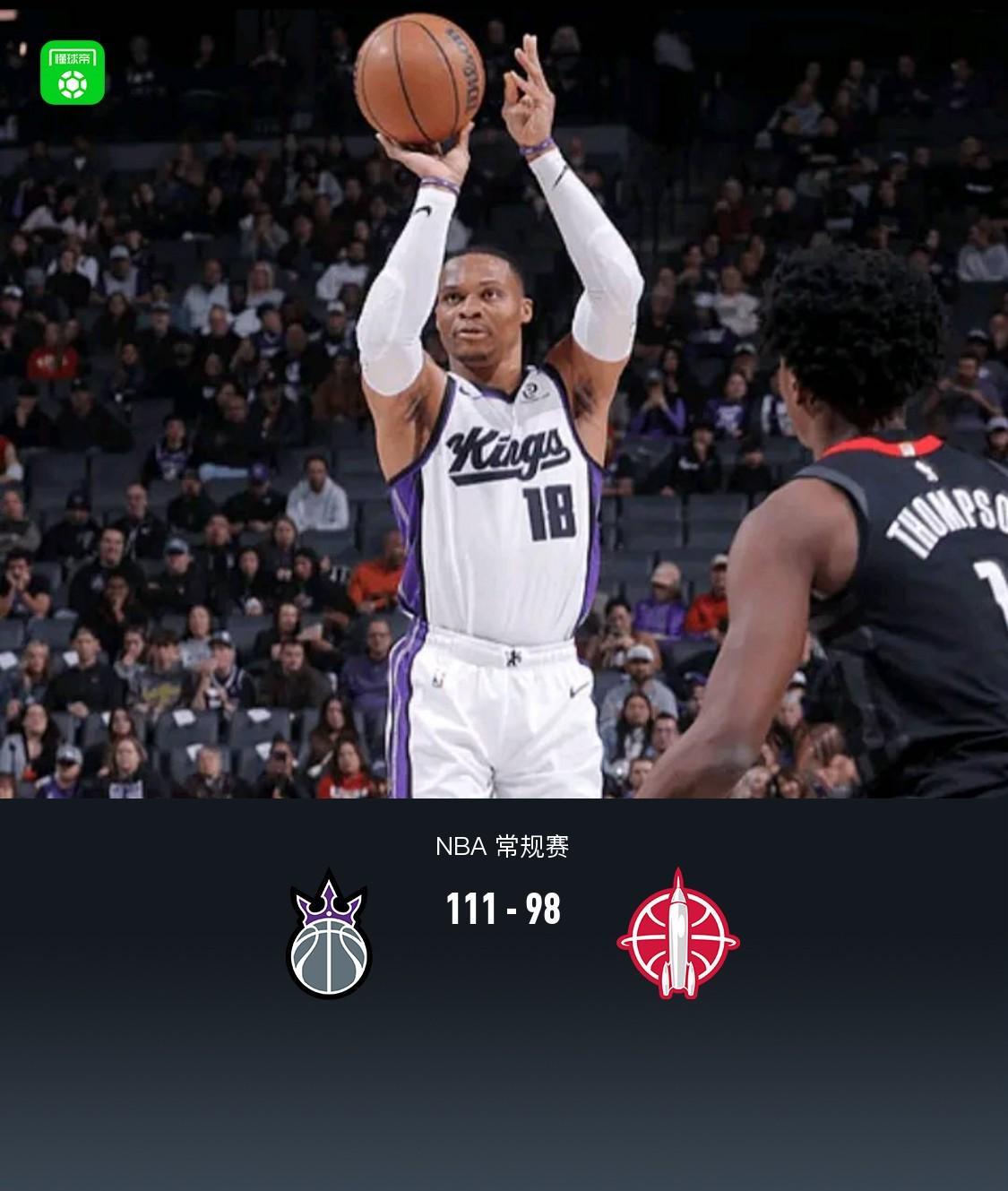 第四节国王威斯布鲁克拿下8分,火箭杜兰特拿下8分,最终国王111-98战胜火箭